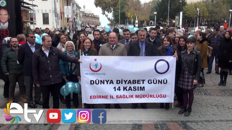14 Kasım Dünya Diyabet Günü’nde Edirne İl Sağlık Müdürlüğü tarafından yürüyüş düzenlendi. Saraçlar Caddesi’nde yapılan yürüyüş etkinliğine İl Sağlık Müdürü Dr. Ali Cengiz Kalkan, Ak Parti İl Başkanı İlyas Akmeşe, Ak Parti İl Kadın Kolları temsilcileri ile sağlık müdürlüğü çalışanları katıldı.