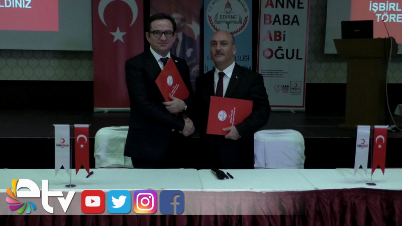 Edirne İl Milli Eğitim Müdürlüğü ile Türk Kızılayı Edirne Kan Merkezi arasında ‘Her Bağış Üç Hayat’ sloganı ile kan bağışı kampanyası protokolü imzalandı.