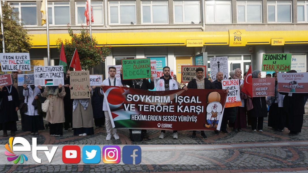 Edirne’de Trakya Üniversitesi Tıp Fakültesi öğrencilerinin terör, soykırım ve İsrail’in Gazze’yi işgalini protesto etmek amacıyla başlattığı sessiz yürüyüşün bu hafta 16’ncısı gerçekleştirildi.