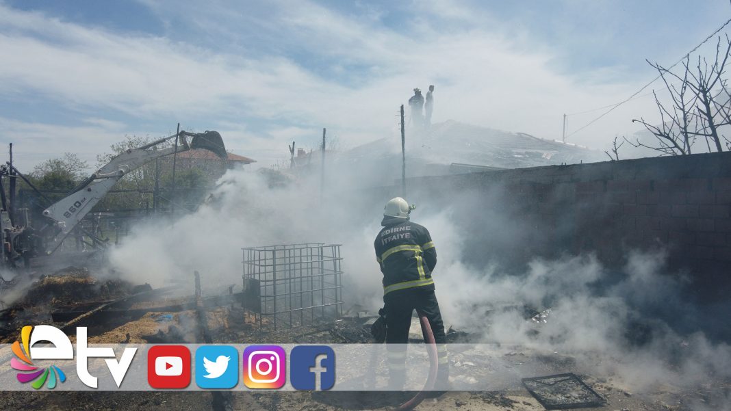 Edirne’de samanlıkta çıkan yangın, rüzgarın etkisiyle eve sıçradı. Yangında, çok sayıda saman balyasıyla birlikte ev de zarar gördü.