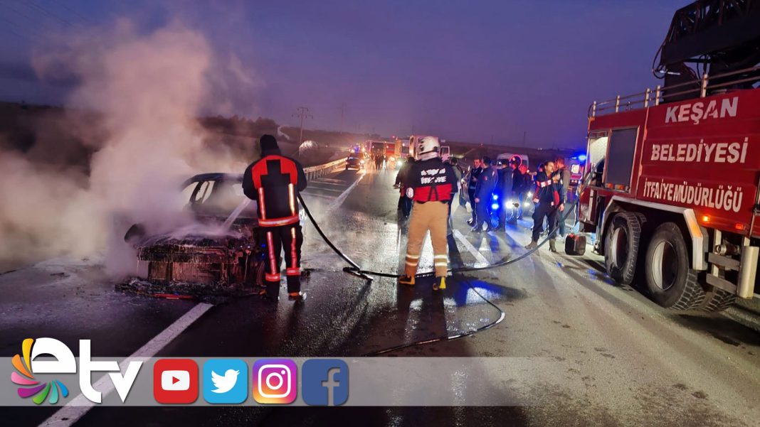 Keşan istikametinden İpsala istikametine seyir halinde olan H.A.Ö. yönetimindeki otomobilin motor bölümü aniden alev aldı. Dumanları fark eden sürücü H.A.Ö. otomobili emniyet şeridine park etti. İhbarda bulunulması üzerine olay yerine polis, jandarma ve itfaiye ekipleri sevk edildi.