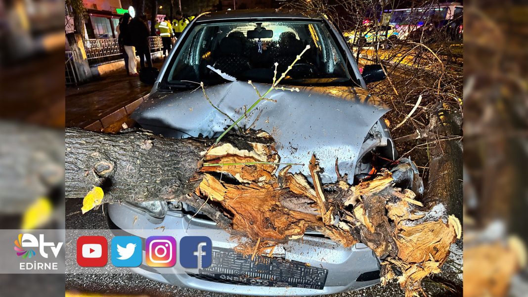 Edirne’nin 1. Murat Mahallesi’nde seyir halinde olan B.T. yönetimindeki otomobilin üzerine, yol kenarında bulunan bir ağaç aniden devrildi. Devrilen ağacın aracın üzerine düşmesiyle otomobil dururken, çevrede kısa süreli panik yaşandı.