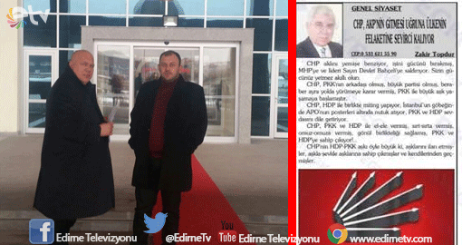 Edirne’de bir yerel gazetede köşe yazısı yazan MHP’nin eski il başkanlarından Zakir Topdur, gazetedeki köşesinde “CHP, AKP’NİN GİTMESİ UĞRUNA ÜLKENİN FELAKETİNE SEYİRCİ KALIYOR” başlıklı yazısında, Cumhuriyet Halk Partisine ve partinin üyelerine hakaret ettiği gerekçesiyle CHP İl Başkanı Fevzi Pekcanlı tarafından savcılığa suç duyurusunda bulunuldu.