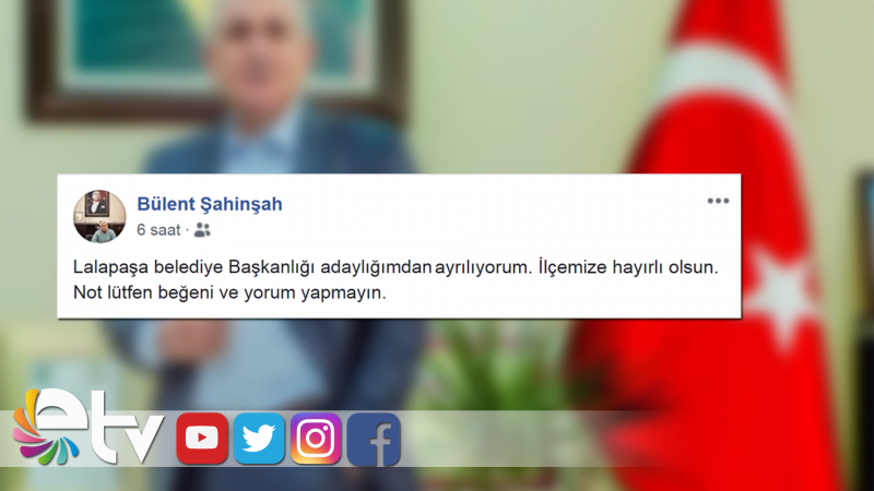 Şahinşah, sosyal medya hesabından yaptığı açıklamada, “Lalapaşa belediye Başkanlığı adaylığımdan ayrılıyorum. İlçemize hayırlı olsun. Lütfen beğeni ve yorum yapmayın” ifadelerini kullandı.