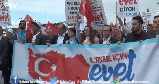 Tekirdağ Köprübaşı meydanında toplanan grup “Milletçe yürekten evet diyeceğiz” “Türkiye'ye evet çok yakışıyor”, “Meclis gençlerle güzel” yazılı dövizler taşıyarak Tuğlalı Park'a yürüdü.