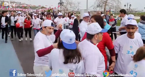 Tekirdağ’da Down sendromlu çocuklar “+1 Farkla Koşuyoruz” sloganı ile 47 metrelik parkurda bitiş çizgisine ulaşabilmek için mücadele etti.