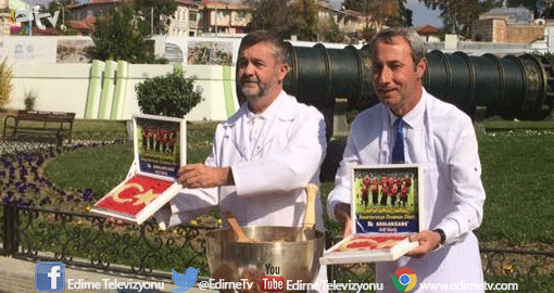Dinar ve Meriç, Selimiye Meydanı Fatih sultan Mehmet Heykeli önünde bir araya gelerek, Ampute Milli Takımı için hazırlanan tatlı ve tava ciğerleri basın mensuplarına tanıttı.