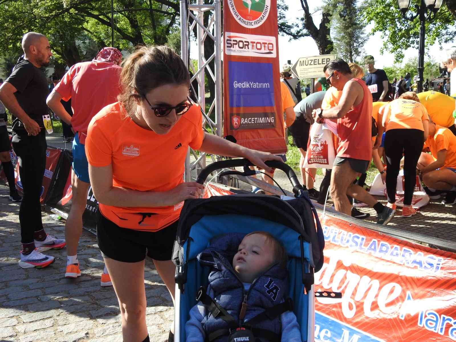7. Uluslararası Edirne Maratonu’nda 16 aylık bebeği ile katılan bir anne ile savaşın yerini barışın alması için beyaz takım elbiseyle katılan sporcular maratonun ilgi odağı oldu.