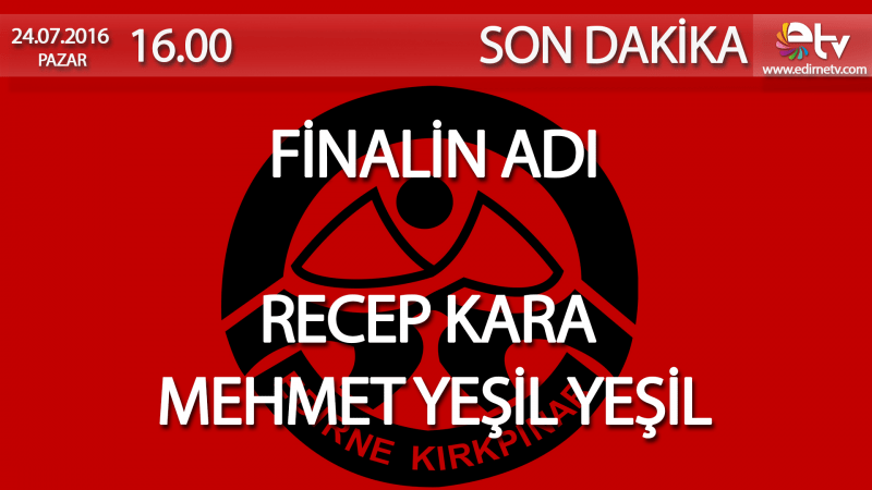 655. Tarihi Kırkpınar Yağlı Güreşlerinde finali adı belli oldu. Altın Kemer için Güreşecek olan Başpehlivanlar Recep Kara ve Mehmet Yeşil Yeşil oldu.