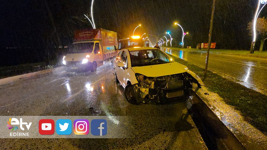 Edirne’de akşam saatlerinde yaşanan kaza, saat 21.30 sıralarında Atatürk Bulvarı üzerinde meydana geldi. Bir sürücünün, yolda oluşan su birikintisini fark edememesi üzerine otomobili kontrolden çıktı. Savrulan araç önce yol kenarındaki aydınlatma direğine, ardından orta refüje çarparak durabildi.