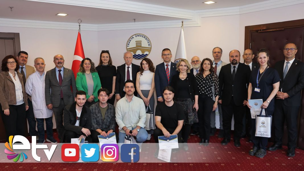 Edirne’de gerçekleştirilen Balkan Ülkeleri Sağlık-İş Forumu süresince Balkanlardan gelen konuk rektör ve rektör yardımcılarına mihmandarlık yapan Trakya Üniversitesi Tıp Fakültesi öğrencilerine teşekkür belgesi verildi.