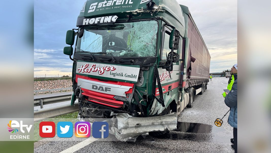 Edirne otoyolunda seyir halindeki tır, sürücüsünün kontrolünden çıkarak, Kapıkule yolunda bariyerlere çarptı. Araç metrelerce sürüklenirken, kazanın şiddeti kameralara yansıdı.