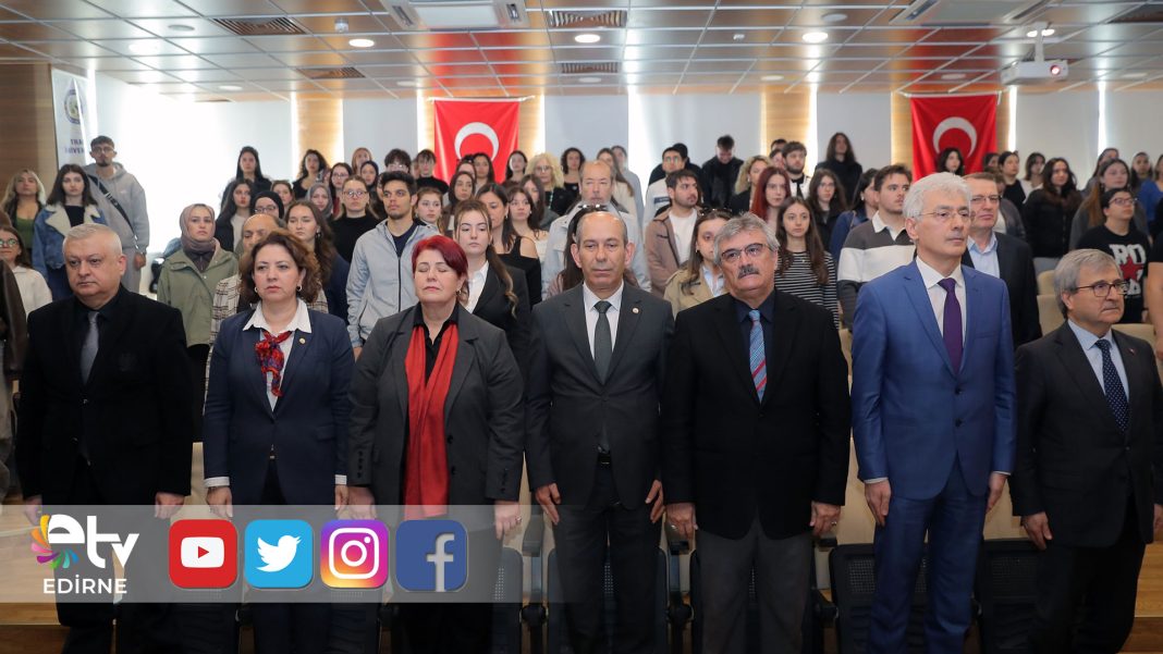 Trakya Üniversitesinde (TÜ) İstiklal Marşı’nın kabulünün 105. yılı nedeniyle program düzenlendi. TÜ Edebiyat Fakültesi Türk Dili ve Edebiyatı Bölümü tarafından düzenlenen program, Eczacılık Fakültesi Gazi Mustafa Kemal Atatürk Konferans Salonu’nda gerçekleştirildi.