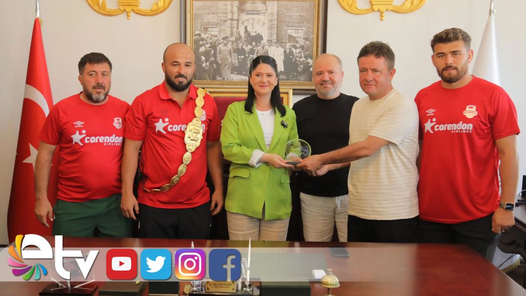 664. Kırkpınar Yağlı Güreşleri’nde rakibi Feyzullah Aktürk’ü yenerek Başpehlivan olan Orhan Okulu, kentten ayrılmadan önce Edirne Belediye Başkanı Av. Filiz Gencan Akın’ı ziyaret etti.