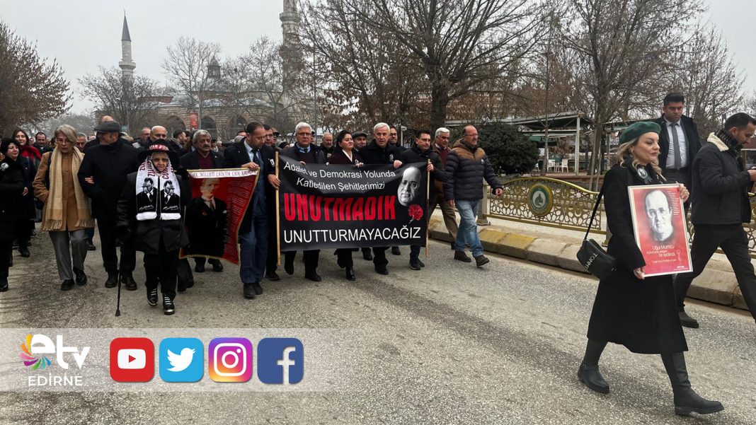 Anma programına Edirne Belediye Başkanı Filiz Gencan, CHP Edirne İl Başkanı Yücel Balkanlı, CHP Edirne Merkez İlçe Başkanı Volkan Akgüngör, Atatürkçü Düşünce Derneği Edirne Şube Başkanı Celil Özcan ve çok sayıda sivil toplum kuruluşu temsilcisi katıldı.