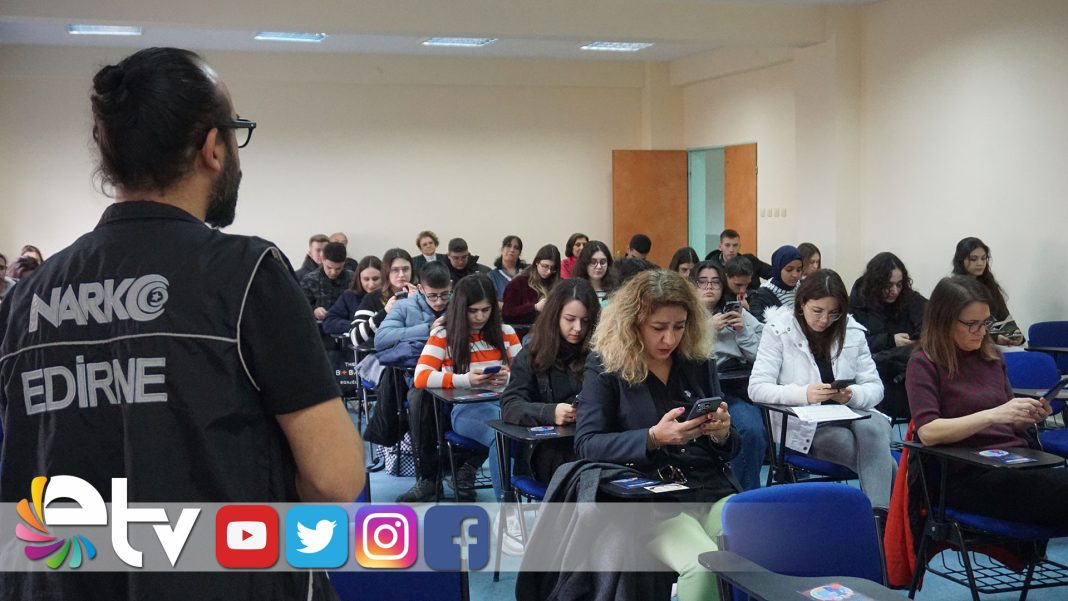 Edirne İl Emniyet Müdürlüğü Narkotik Suçlarla Mücadele Şubesi ekiplerince, Trakya Üniversitesi öğrencilerine bağımlılıkla mücadele eğitimi verildi ve ‘Narko Gençlik’ projesi anlatıldı.