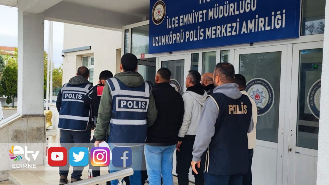 Uzunköprü ilçesi genelinde Uzunköprü İlçe Emniyet Müdürlüğü Suç Önleme Ve Soruşturma Büro Amirliği tarafından haklarında arama kararı bulunan şahıslara yönelik operasyon düzenlendi. Operasyonda hırsızlık suçundan 1 yıl hapis cezası bulunan İ.S., dolandırıcılık suçundan 4 yıl 6 ay hapis cezası bulunan H.Ç., konut dokunulmazlığı suçundan 1 yıl 8 ay hapis cezası bulunan E.S., uyuşturucu madde kullanma suçundan 1 yıl 8 ay hapis cezası bulunan V.C., trafik güvenliğini tehlikeye sokma suçundan 11 ay 7 gün hapis cezası bulunan S.K. polis ekipleri tarafından yakalandı. Emniyette yapılan işlemlerin ardından adliyeye sevk edilen 5 şahıs çıkarıldıkları mahkemece tutuklanarak Edirne Kapalı Ceza İnfaz Kurumu’na gönderildi.