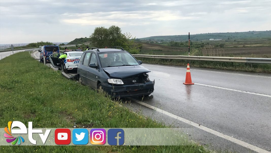 Edirne istikametinden Uzunköprü yönüne giden otomobil, Parpudar Bayırı mevkiinde sürücüsünün direksiyon hakimiyetini kaybetmesi sonucu kontrolden çıkarak refüje çarptı. Kazada otomobil sürücüsü ve yanındaki yolcu yaralandı.