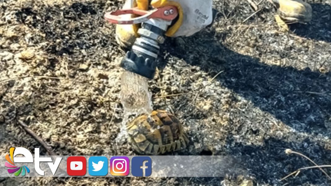 Edirne’de alevlerin ortasında kalan kaplumbağanın imdadına itfaiye yetişti. Kurtarılan kaplumbağa, itfaiyenin can suyu vermesiyle yeniden doğaya salındı.