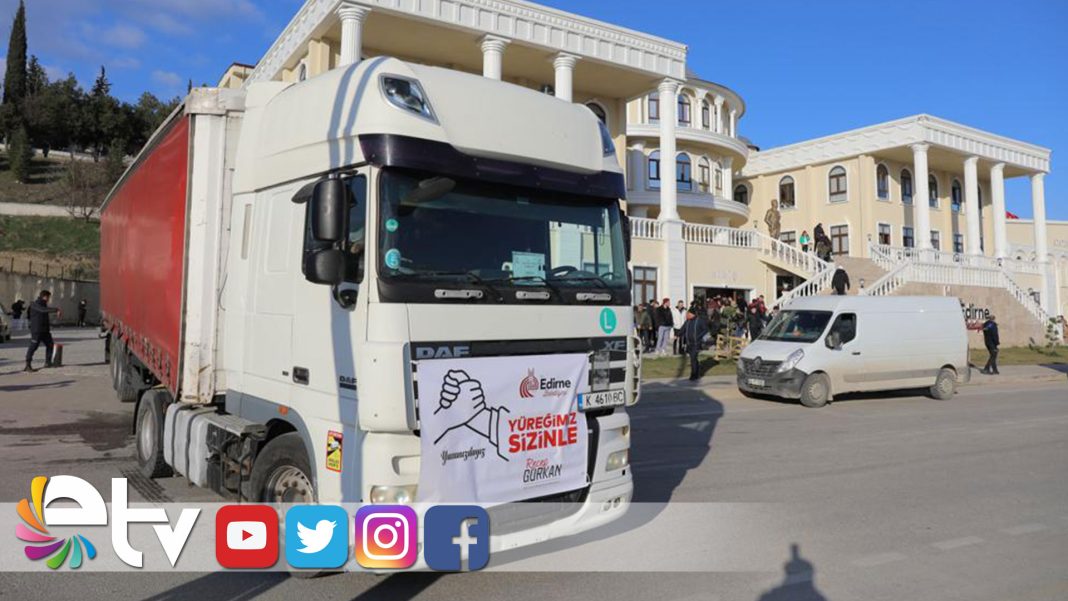 Edirne Belediye Başkanı Recep Gürkan, konuyla ilgili yaptığı açıklamada, “Edirneliler olarak Edirne’deki tüm kurumlar olarak halkımızla beraber, Pazartesi 12’de ayni yardım kampanyamızı başlattık. Gerçekten çok hızlı bir şekilde devam ediyor. Gönüllülerimiz, belediye personelimiz, halkımız, lise öğrencilerimiz, üniversite öğrencilerimiz yani 7’den 70’e bütün Edirneliler, ellerinden gelen bütün imkanı kullanarak yardım malzemelerini buraya getirdiler. Bunların içerisinde kışlık giysiler var; montlar var, ayakkabılar var, çok sayıda battaniye var, gıda maddeleri var, çocuk mamaları, çocuk bezleri var, hijyen malzemeleri var. Burada bir organizasyon kurduk. Getiren arkadaşlardan hemen teslim alıyoruz. İçeride gönüllerimiz ve çalışanlarımız onları tasnif ediyor. Kolilere koyuyorlar ve dünden beri de tırlarla sevkiyatlarına başladık, deprem bölgesine. Şu saat itibariyle 8 tırımız gitti, yolda. Ulaşanlar var. Hali hazırda 9’ncu ve 10’ncu tırlarımız yükleniyor. Devam edeceğiz.” dedi.