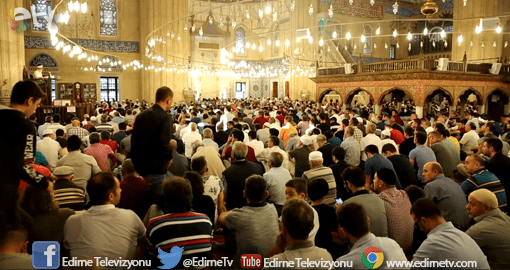 Edirne’de vatandaşlar, bayram namazında Mimar Sinan’ın ustalık eseri tarihi Selimiye Camisi’ni doldurdu.