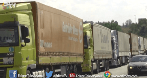 Bayramı yollarda karşılayan tır şoförleri, yurtdışına çıkmak için kuyrukta kendileri gibi bekleyen meslektaşlarıyla bayramlaştı. Şoförler bayramlaşmanın ardından birbirlerine şeker ikram etti.