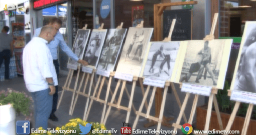Edirne'deki bir akaryakıt istasyonunda, 656. Tarihi Kırkpınar Yağlı Güreşleri öncesi tarihe adını altın harflerle yazdıran başpehlivanların fotoğraflarının yer aldığı sergi açıldı.