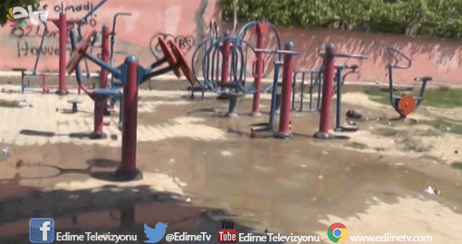 Edirne’de çocuk parkının içinde meydana gelen su patlağı, parktaki oyun aletlerini su içinde bıraktı. Parktan akan suların elektrik panosuna sızması ise tehlikeyi gözler önüne serdi.