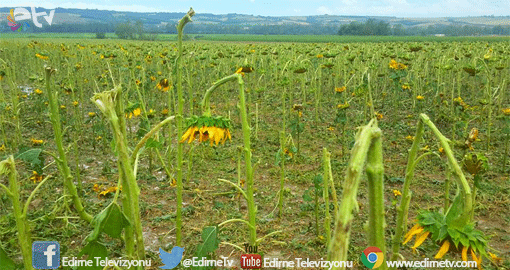 Dolu yağışı tarlada ekili ayçiçeğini de vurdu. Edirne Ziraat Odası Meclis Başkanı Erdal Akgün, dolu yağışının hasadı yaklaşan ayçiçeklerine büyük zarar verdiğini söyleyerek “büyük üzüntü içindeyiz” dedi.