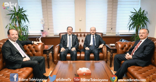 Bir dizi çalışma ziyaretleri için Ankara’ya giden Edirne Valisi Günay Özdemir ve Belediye Başkanı Recep Gürkan, Milletvekili Rafet Sezen ile birlikte Çalışma ve Sosyal Güvenlik Bakanı Dr. Mehmet Müezzinoğlu’nu makamında ziyaret ettiler. Geçtiğimiz yıllarda yapılan Yemiş Kapanı Hanı kazılarının ardından yakın bir zamanda yapımına başlanacak olan Selimiye Meydan Projesi için destek isteyen Edirne heyeti kent genelinde yapılacak yatırımlar hakkında da görüş alışverişinde bulundu.