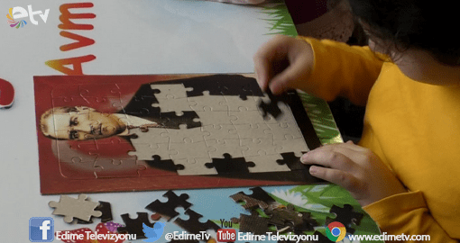 Bugünkü etkinliğe katılarak puzzle yapımını öğrenen çocuklar yarın da Türk bayrağı yapacak.