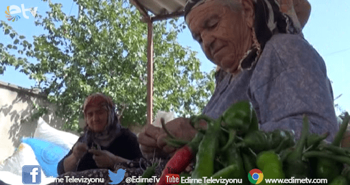 Evlerinin bahçesinde yeşil acı biberleri tek tek dizen ev hanımları işlerinin inceliklerini ise şöyle anlatıyor: