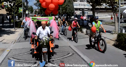 Lüleburgaz Belediyesince süslenen bisiklete binen damat Serkan Ölmez, kendisine eşlik eden bisiklet konvoyuyla, bir süre önce evlenme kararı aldığı kız arkadaşı Dilek Özkan'ın evine gitti.