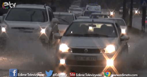 Edirne’de akşamüzeri başlayan ve zaman zaman şiddetli yağan yağmur cadde ve sokakları göle çevirdi. Meteorolojinin verilerine göre hafta başına kadar yağışlı hava etkisini sürdürecek.