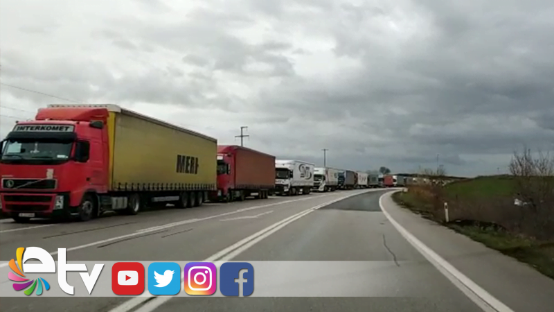 Hamzabeyli Sınır Kapısı’ndaki TIR kuyruğu 20 kilometreye yaklaştı. Türkiye’den yükledikleri ihracat yüklerini Avrupa’nın çeşitli ülkelerine götürmek üzere yola çıkan TIR’lar, uzun kuyruklar oluşturdu.
