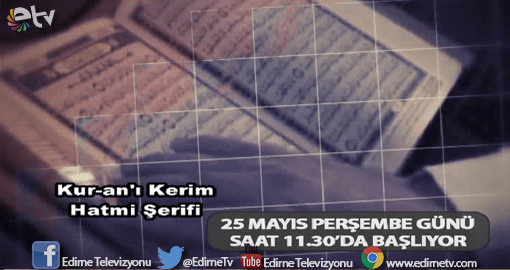 Hatim-i Şerif ETV ekranlarında başlıyor. Her ramazanda olduğu gibi bu ramazanda da Edirneliler Hatim-i Şerif’i ETV ekranlarından takip edecek.