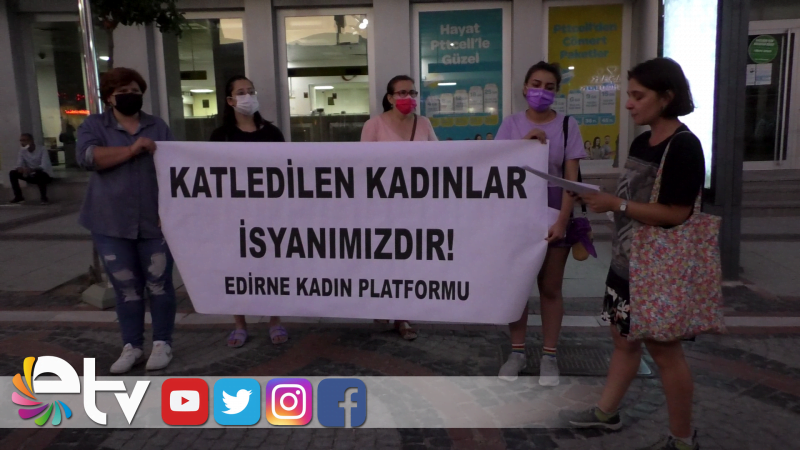 Edirne Kadın Platformu, kadın cinayetlerine karşı meydandaydı. Basın açıklamasını okuyan Betül Okuyan, İstanbul Sözleşmesi’ne vurgu yaptı. Okuyan, “Buradan bir kez daha sesleniyoruz, İstanbul Sözleşmesinden vazgeçmiyoruz.” dedi.
