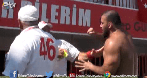 Uzunu süre sakinleşmeyen pehlivan daha sonra hakkının yenildiğini iddia ederek hüngür hüngür ağladı. Yumrukladığı hakem gibi babasının da saha hakemi olduğu öğrenilen pehlivan itirazlarına babası da eklendi.