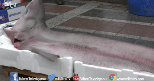 Edirne’de bir balıkçının teşhir amacıyla tezgahında sergilediği köpek balığı vatandaşlar tarafından ilgi odağı oldu. 1,5 metreyi aşkın uzunluğunda, 80 kilo ağırlığındaki camgöz cinsi köpekbalığı Marmara Denizi’nde balıkçılar tarafından yakalandı.