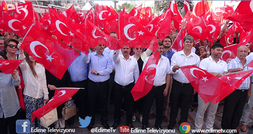 Milyonların katılımı ile İstanbul Yenikapı’da gerçekleştirilen ‘Demokrasi ve Şehitler Mitingi’ Edirne’de de 10 binler tarafından soluksuz takip edildi.