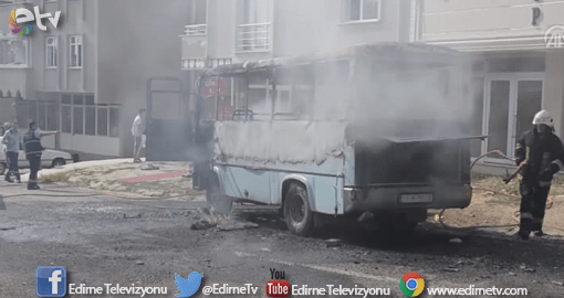 Malkara’da yolcu minibüsü seyir halindeyken, motor kısmından çıkan kıvılcımla alev alev yandı.