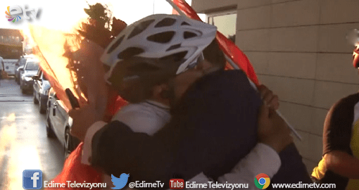 Bisikletliler, burada UETD Genel Sekreteri Bülent Bilgi, UETD kurucularından ve Genel Başkan Danışmanı Güleser Topuz, AK Parti Edirne Gençlik Kolları Başkanı Tarık Hatipler tarafından çiçeklerle karşılandı.