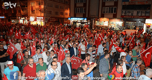 Darbe girişimine karşı başlatılan ve 8´nci gecesine giren demokrasi nöbetleri Edirne´de binlerce kişi tarafından tutulmaya devam ediyor.