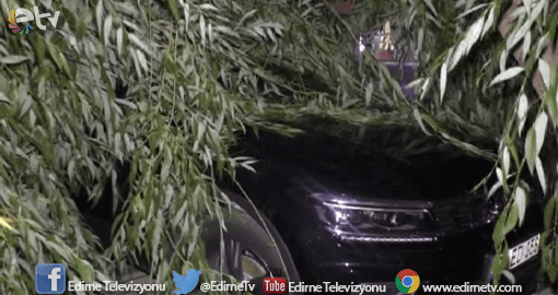 Edirne’de dün akşam saatlerinde etkili olan şiddetli fırtına ve sağanak yağışta bir ağaç, park halindeki otomobilin üzerine devrildi. Otomobilde maddi hasar oluştu.