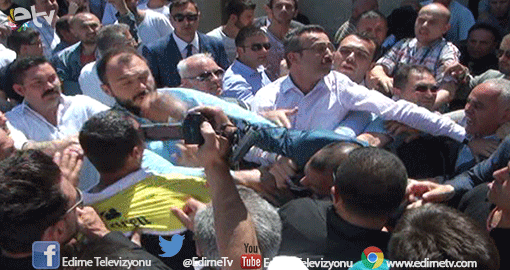 Cenaze namazına katılan CHP lideri Kemal Kılıçdaroğlu'na hakaret ettiği ve şehit yakını olduğu iddia edilen genç ile partililer arasında başlayan kavga büyüdü. Kavgada tekme, yumruklar havada uçuştu.
