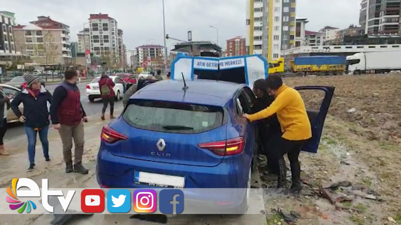 Kaldırım üzerinde bulunan Edirne Belediyesine ait atık kumbarasına çarpan ve ön kısmı tamamen kumbaranın içine giren otomobil, yaklaşık 4 metre sürüklenerek yolcu durağına da çarptı.