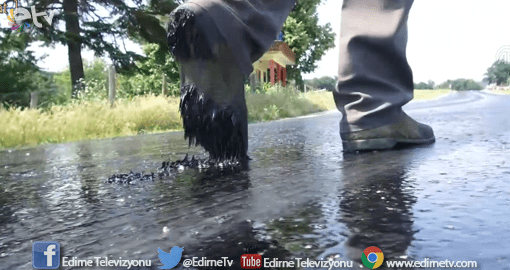 Kırklareli’nde hava sıcaklığının 37 dereceye ulaşması nedeniyle bazı bölgelerde asfalt eridi. Bazı vatandaşların ayakkabı ve terlikleri asfalta yapıştı.