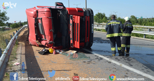 Bayram Demirci’nin kullandığı 06 PPE 88 çekici 06 PTH 62 dorse plakalı TIR aracı Edirne otogar istikametinden D-1OO karayolu bağlantı noktasına geldiği sırada, sürücüsünün direksiyon hakimiyetini kaybetmesi sonucu devrildi.