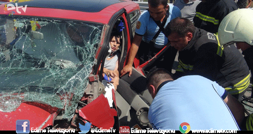 Edirne'deki trafik kazasında anne ile oğlu yaralandı.