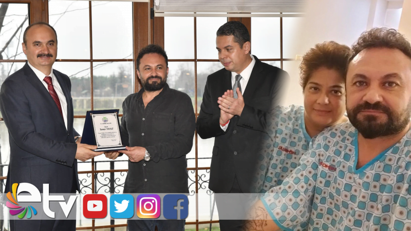 Edirne Valisi Ekrem Canalp, 10 Ocak Çalışan Gazeteciler günü nedeniyle düzenlenen programda eşi için organ bağışında bulunan Edirne’nin Sesi Gazetesi Yazı işleri Müdürü Tamer Yavuz’a örnek davranışından dolayı teşekkür plaketi verdi.